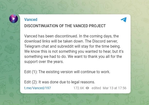 On the other side, it is stated that this shutdown is due to legal grounds, implying that Google has heard about this issue and what it includes and has compelled Vanced to cease operations immediately.